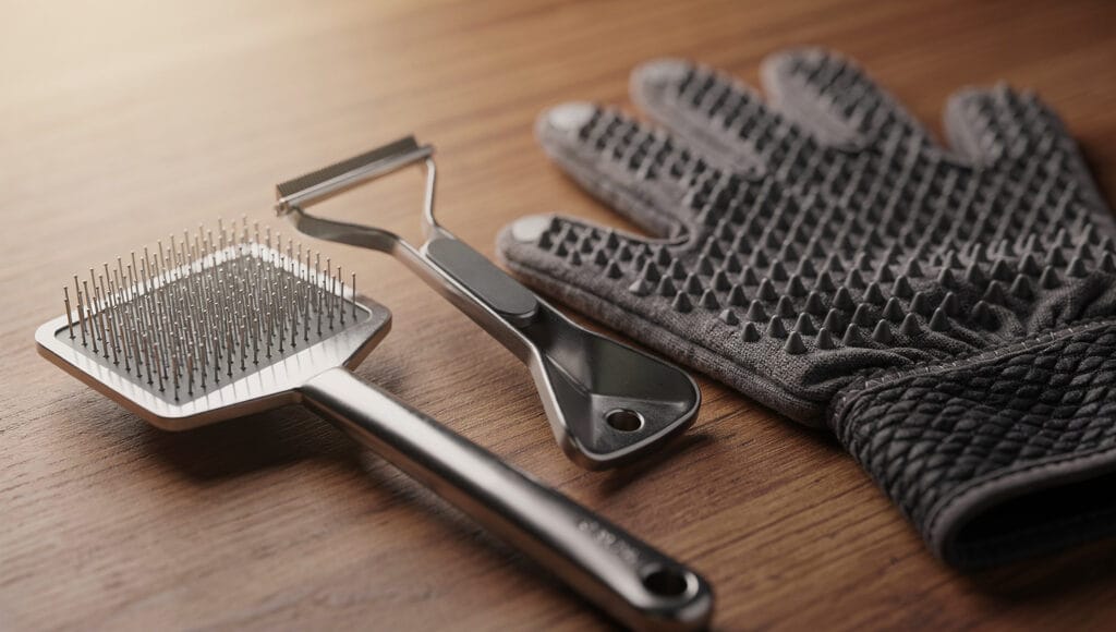 If shedding is your biggest concern, a deshedding tool for cats works best when used occasionally. For daily maintenance, a slicker brush is often the best shedding brush for cats. If your cat dislikes traditional brushes, cat grooming gloves are an excellent starting point.
